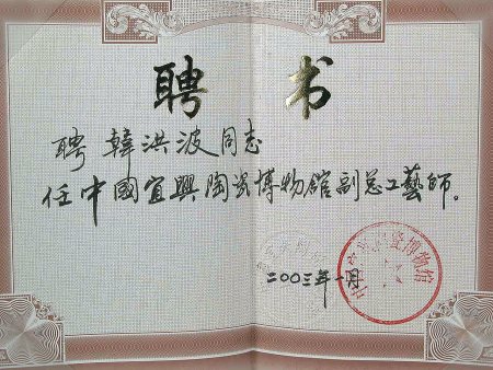 2003年1月,古農真壺集團所屬之古陶研究所所長韓洪波先生,獲上級聘任為【中國宜興陶瓷博物館】歷來第一位領導博物館各陶、瓷等所屬創作單位的陶瓷藝術專業領導人,為韓洪波先生再添學術能力的肯定,亦為古陶研究所的領先技藝與專業能力做了最好的註解。註:【中國宜興陶瓷博物館】至目前為止,並無總工藝師的聘任,故韓洪波先生任副總工藝師,即是所有技藝人員的最高領導,謹此說明。