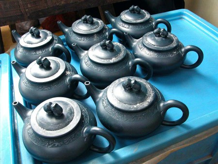 每次為了幾件古農真壺的稀世名泥系列,總是要作家不分日夜努力的先細心製造出一大批生胚,手氣欠佳時,就會如這次的韓洪波所長一樣(如圖),入窯燒成後,慘遭“全軍覆沒”!(註:可謂完全比賽,連上個壘包都沒份兒...)所以老麻瓜才叫它們:鬼見愁啊!
